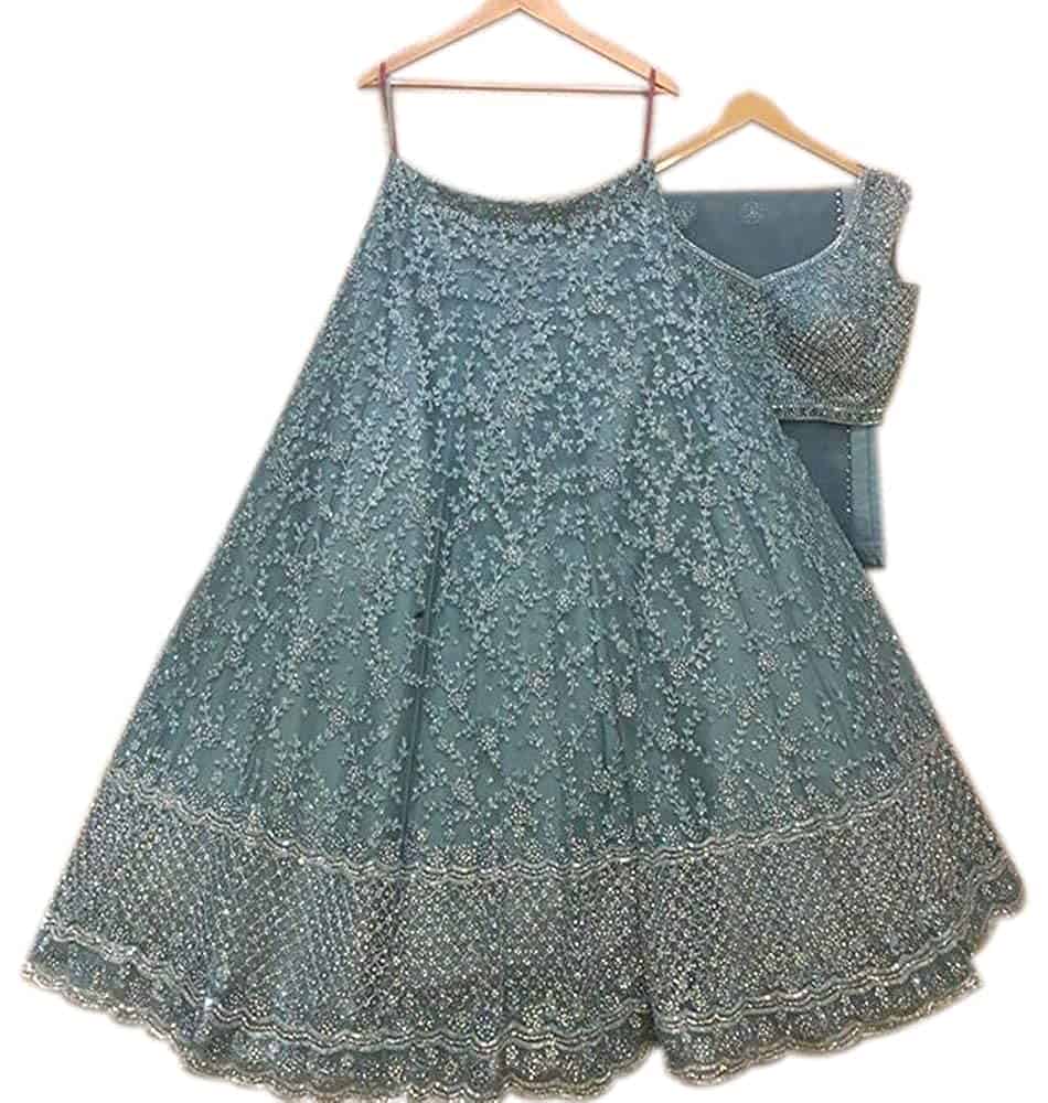 • Lehenga fabric: tishu with heavy embroidery work with cut work lehenga color: sky blue lehenga length: 42 inch