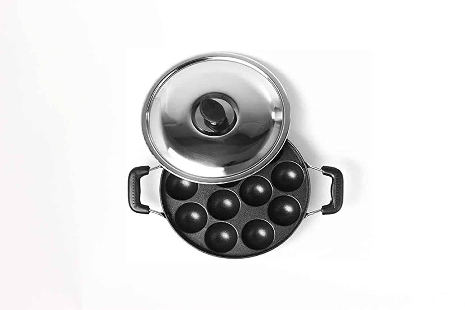 • The aluminum body makes it lighter in weight, also aluminum is an excellent heat conductor and it also makes the appam Patra odorless