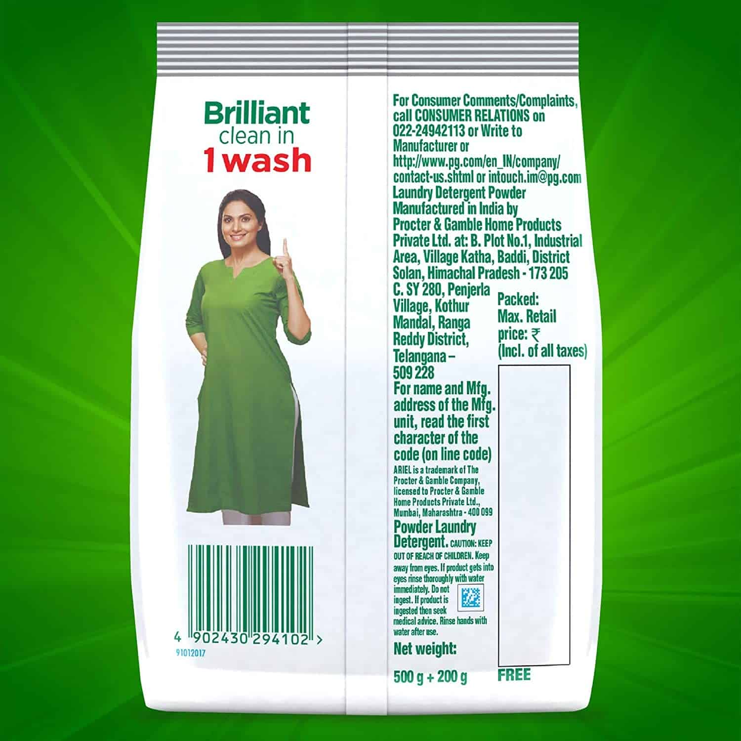 • Ariel Complete Detergent Powder is best used for semi-automatic washing machines and handwash