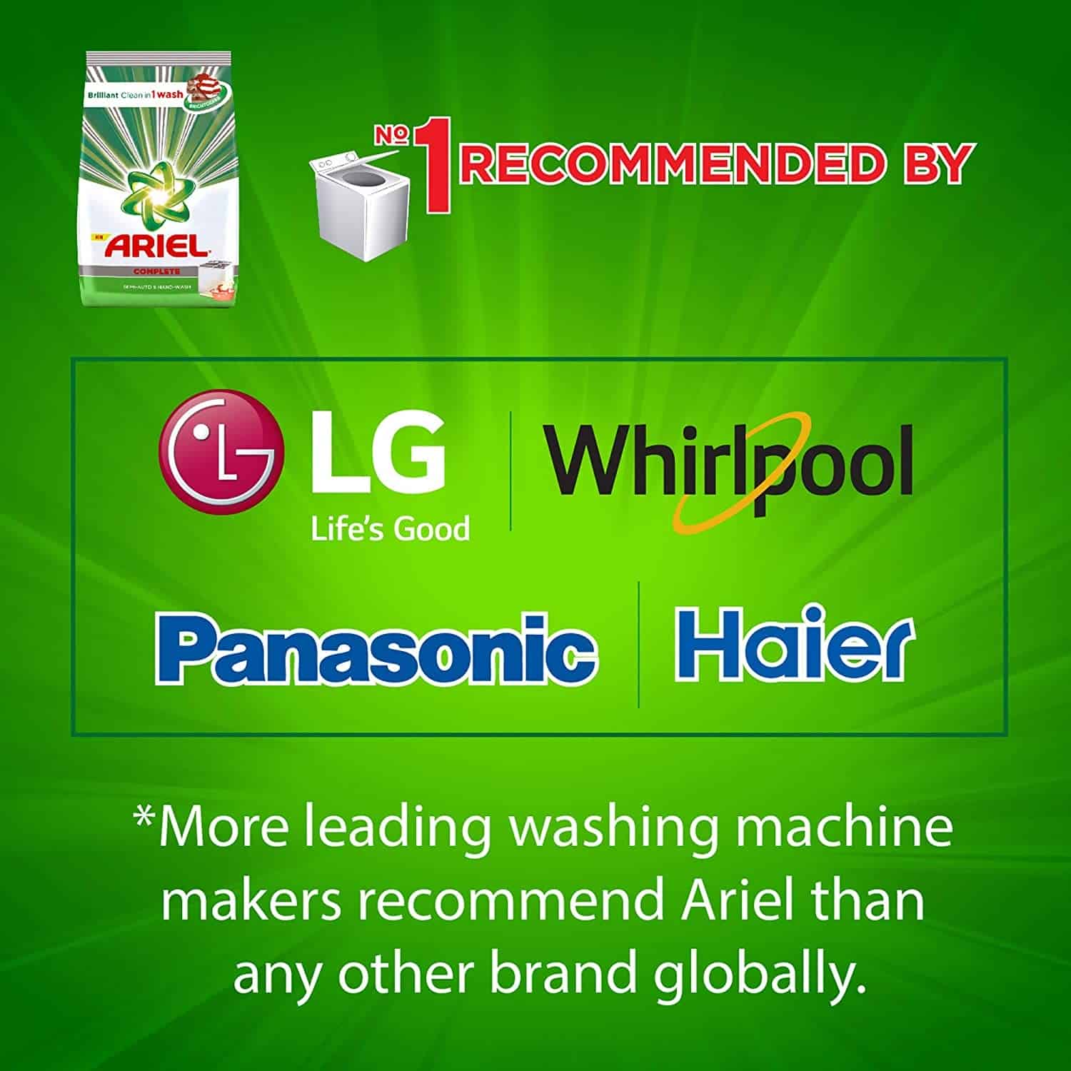 • Ariel is the no. 1 brand recommended by washing machine manufacturers like LG, Whirlpool, Panasonic, etc.