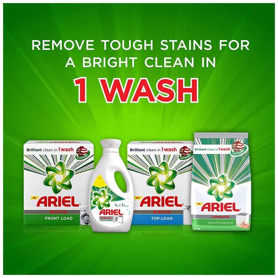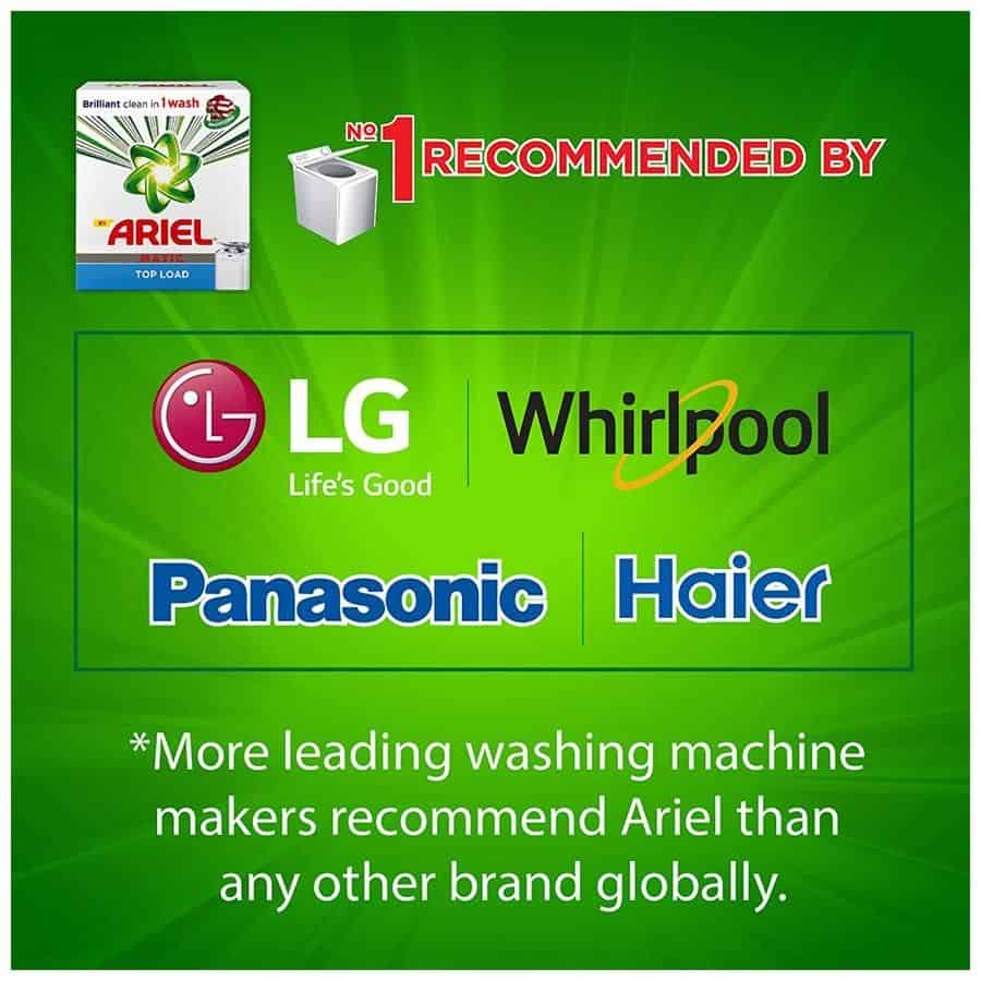 • Ariel is the no. 1 brand recommended by washing machine manufacturers like LG, Whirlpool, Panasonic, etc.