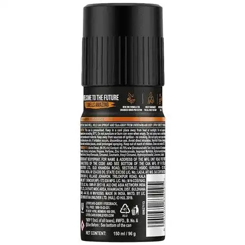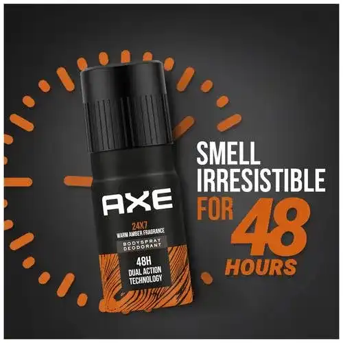 Introducing Recharge 24x7 Deodorant by Axe. It offers a wide range of long-lasting fragrances, no-gas perfumes and male grooming products. The axe is your wingman for all your daily grooming needs. These deodorants for men are formulated with 48HR Dual Action Technology that keeps you smelling great, feeling fresh and having lasting odour protection. So, now you know why Axe is the perfect pick for your daily grooming needs. The rich Praline, Amber and red Apple notes linger on all day long, letting you zip through the day smelling fabulous. The Axe Recharge 24x7 long-lasting Deo for men gets you used to the best.