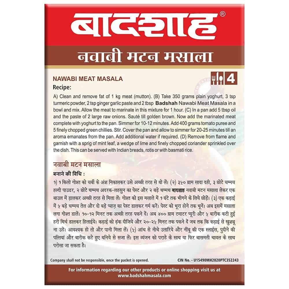 • Badshah nawabi meat masala enhances the taste of your dish and perfect blend of pure spices. It is the wonderful mix of rich flavour and superiority