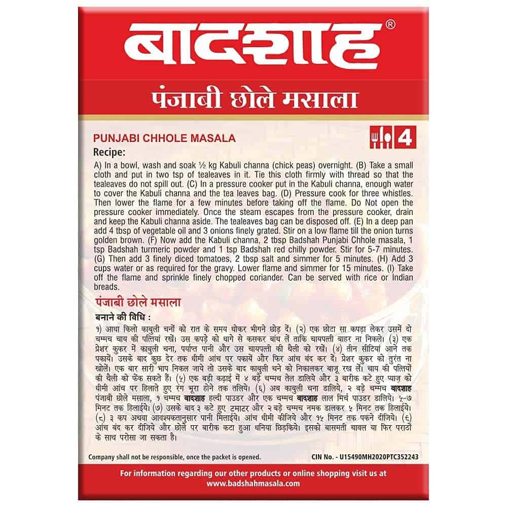 Badshah Punjabi chhole masala has authentic taste, flavour and aroma. Chhole masala is a perfect blend of all spices and enhances the taste of your dish.