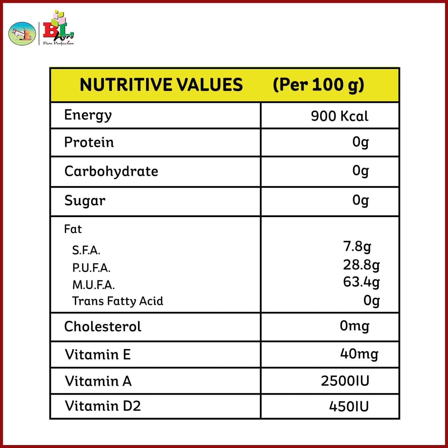 Health Benefits: This oil contains Omega 3 & 6, Vitamin E, Minerals and antioxidants, and demonstrates strong Antimicrobial property. It is also Anti-inflammatory in nature. The optimum ratio of Omega 3 & 6 fatty acids is also essential for good health and metabolism. This product also is rich in MUFA & PUFA which improves risk factors.