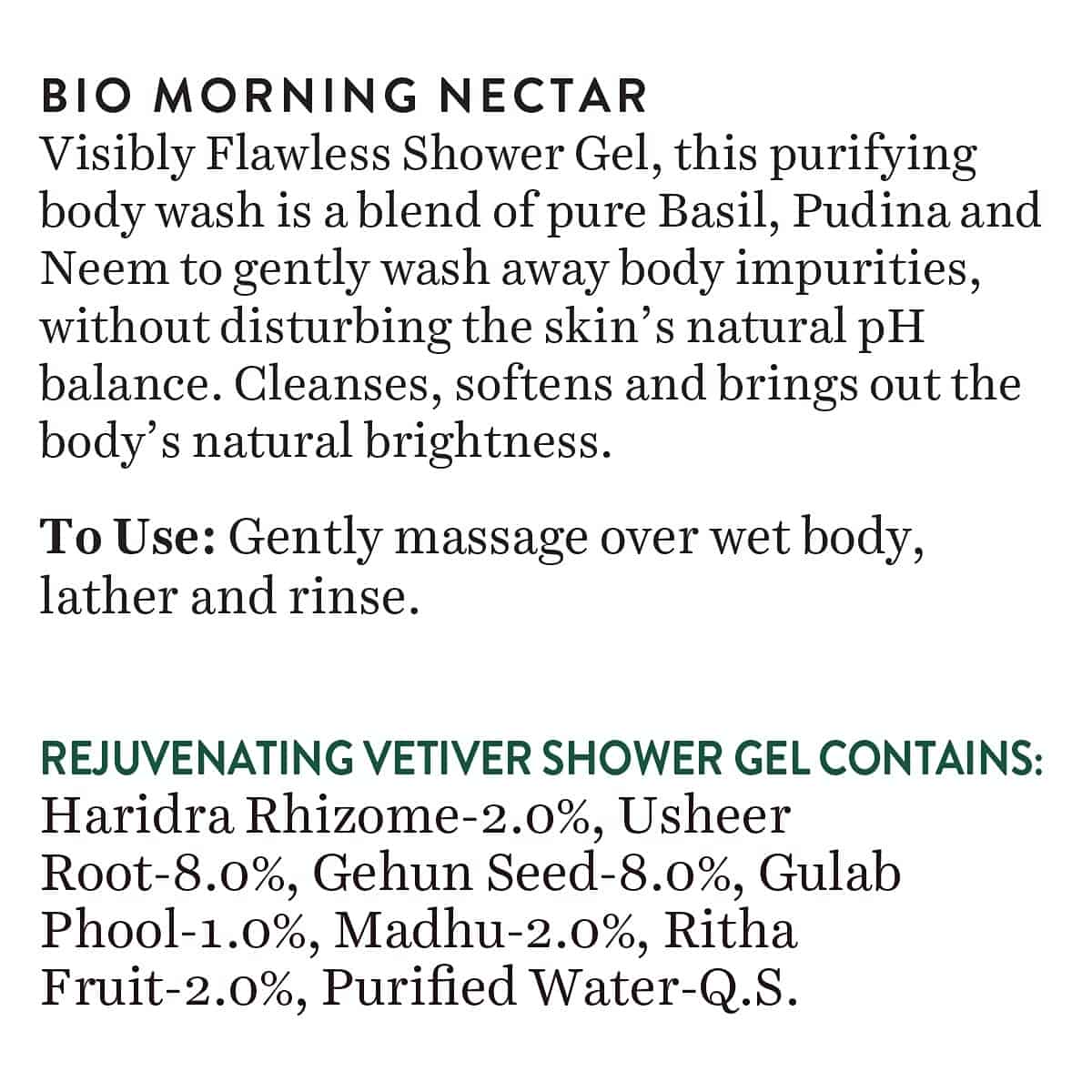• Gently massage over wet body, lather and rinse, morning and evening