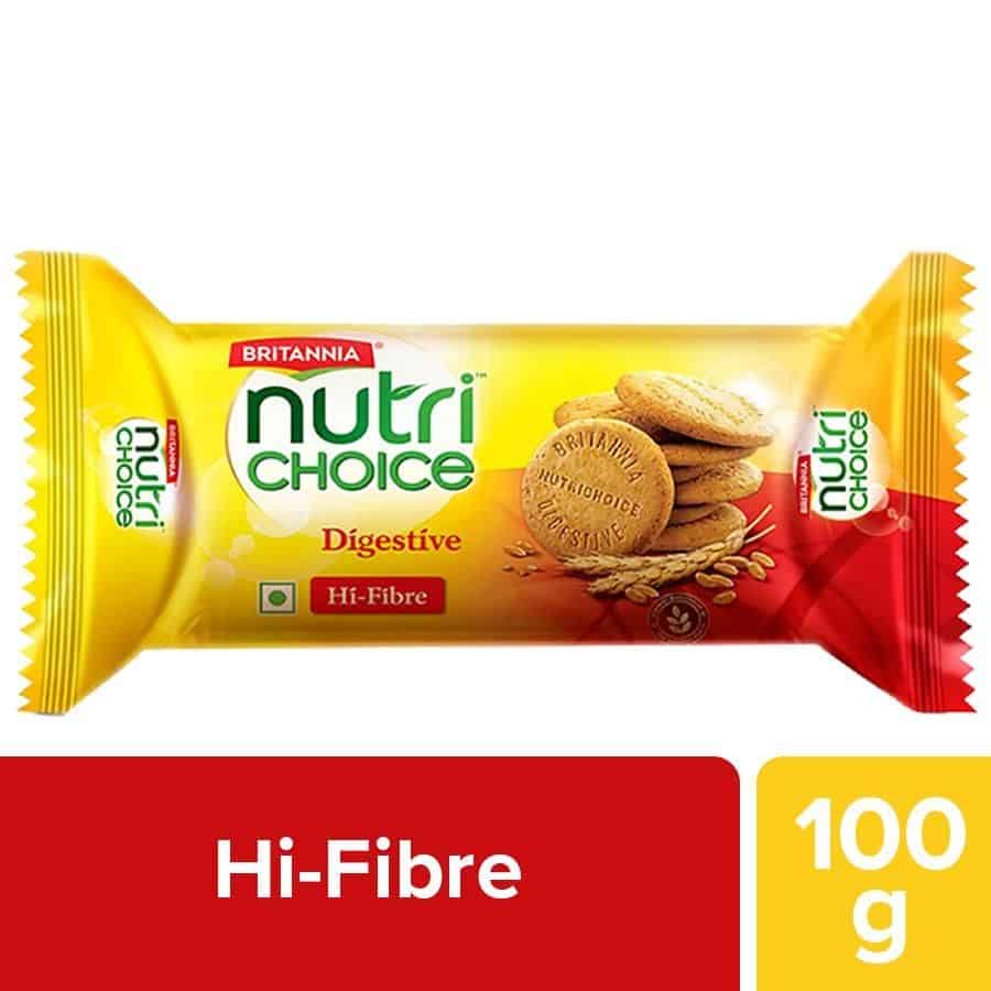 Britannia NutriChoice Digestive Biscuits are fibre rich biscuits packed with the richness of Whole wheat (atta) and bran. With every bite, you experience the coarseness of this fibre-rich healthy biscuit. These Digestive cookies are baked to precision, a perfect healthy snack. Go ahead and make a good choice.