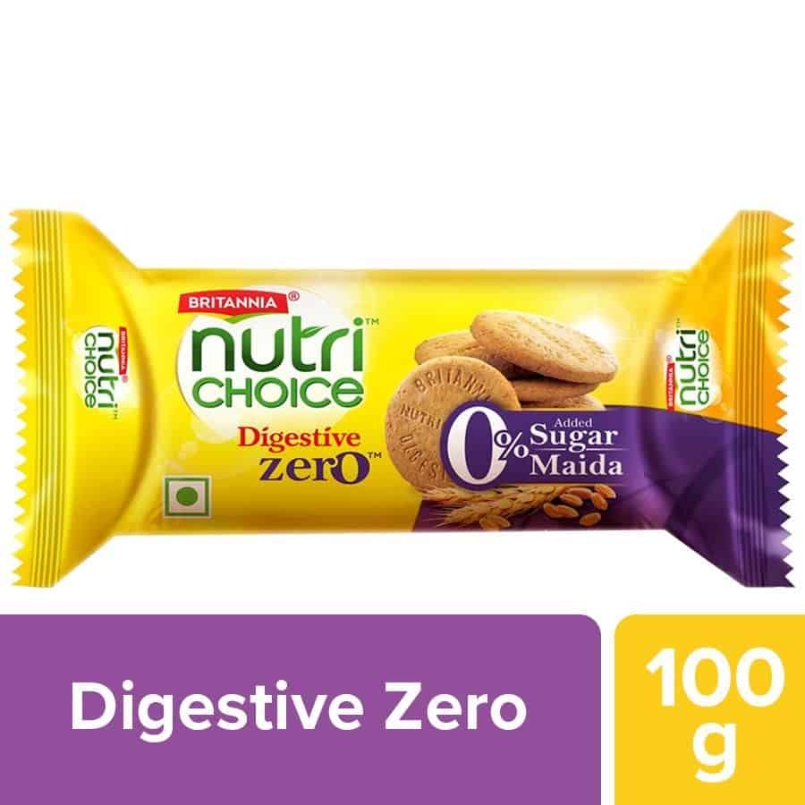 Britannia NutriChoice Digestive Zero biscuits are high fibre wheat biscuits containing no maida and no added sugar. These atta biscuits are loaded with the richness of Whole wheat(atta) and bran. These wholegrain Digestive biscuits make a perfect healthy snack for people who do not wish to compromise a bit on their health.