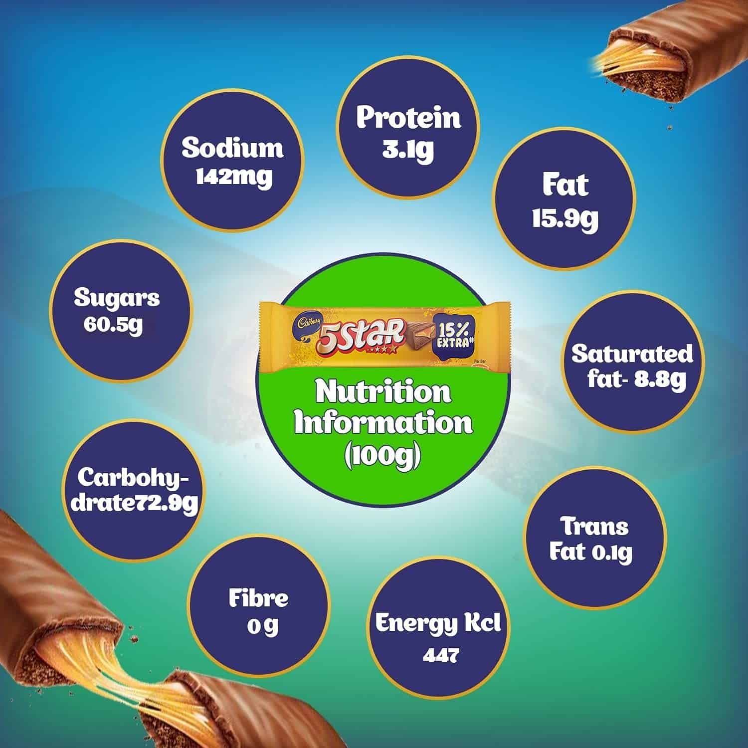 This assorted pack contains 3 unit of Cadbury dairy milk -23g, 2 units of 5 star-22.4g, 3 units of Gems-7.9g, 3 units of Cadbury dairy milk -12g, 1 unit of 5 star-10g