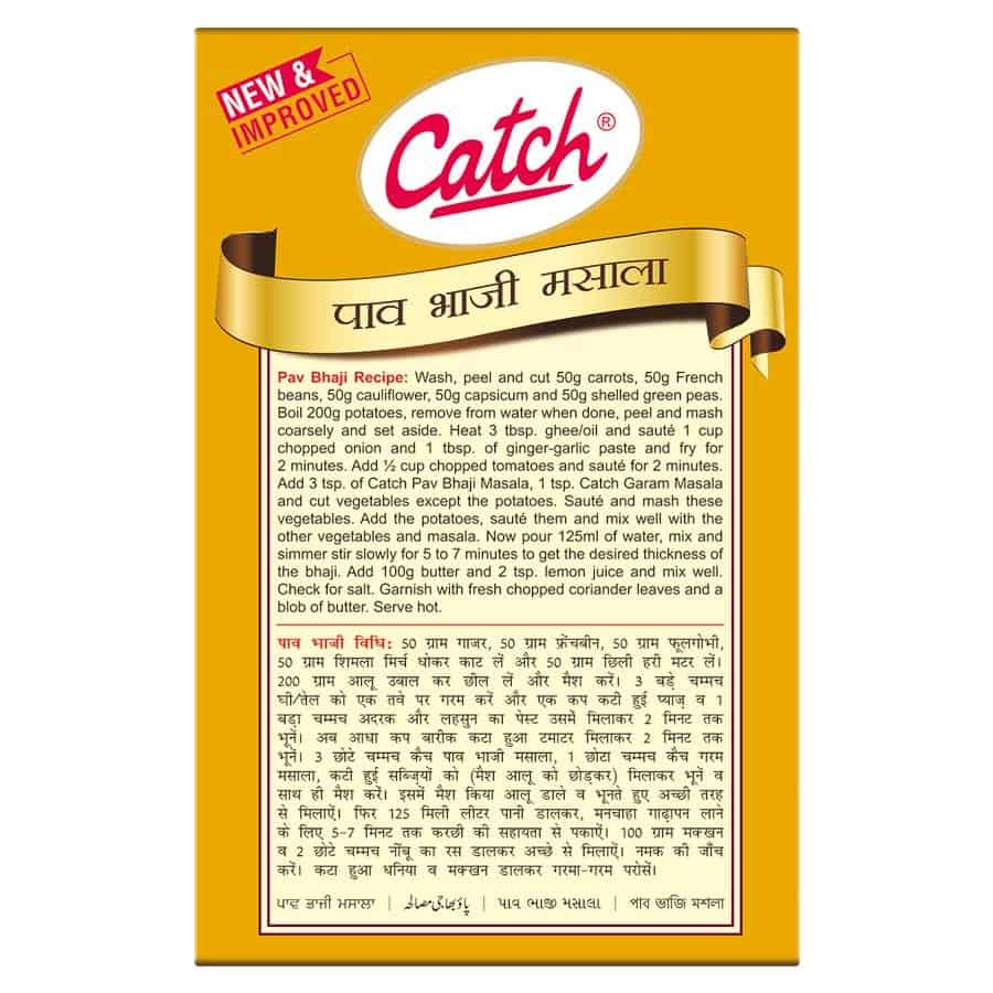 Catch Pav Bhaji Masala is one of the key reasons why the world-famous Mumbai dish is loved everywhere. A perfect blend of Indian spices ground at low temperature gives your Pav Bhaji a delectable taste and fragrance. This is a Jain product.