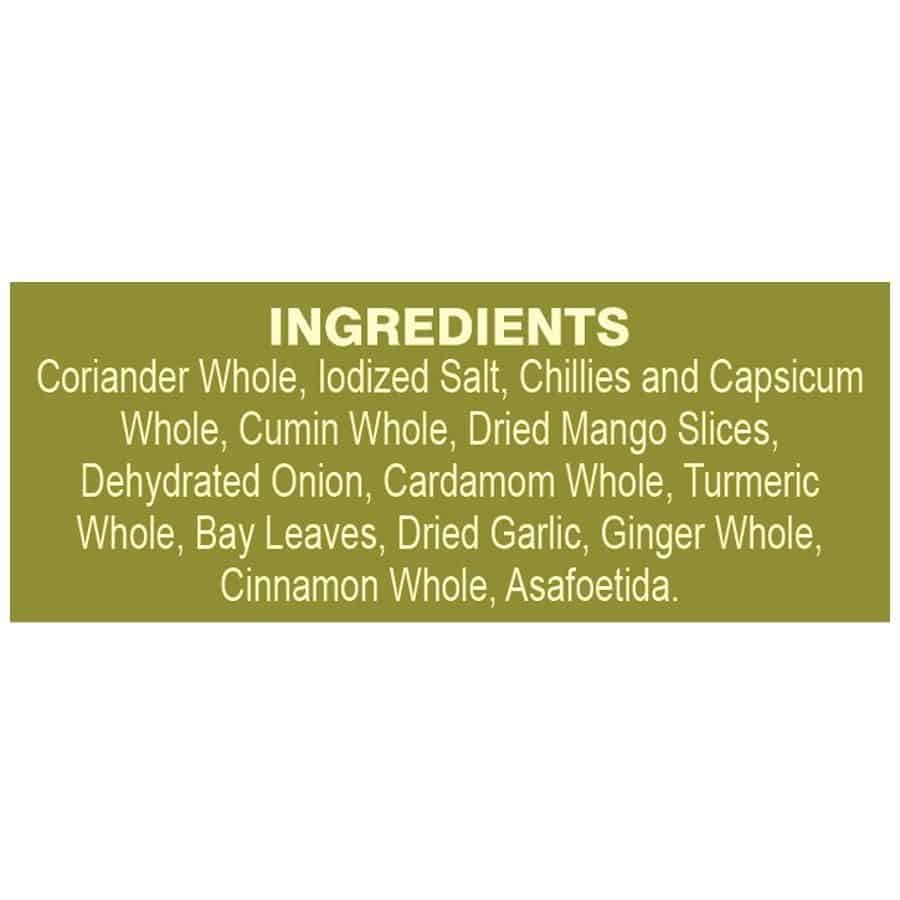 Catch Sabzi Masala ensures that you have a delicious vegetable dish for every meal. Catch Sabzi Masala is all about the subtle and balanced flavour and aroma of exotic spices. These spices turn any boring vegetable dish into a tasty treat. This product contains Onion & Garlic.