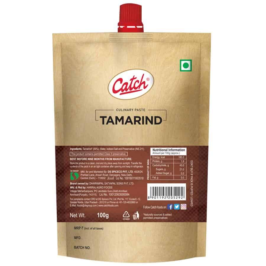 The authentic tamarind paste is prepared from fresh and superior quality tamarind reminding us of the homemade dishes soaked in the tangy touch of tamarind. Whether it is the special Sambar or the festive Pulihora or daily Rasam affair, Catch Tamarind Paste is the right match.