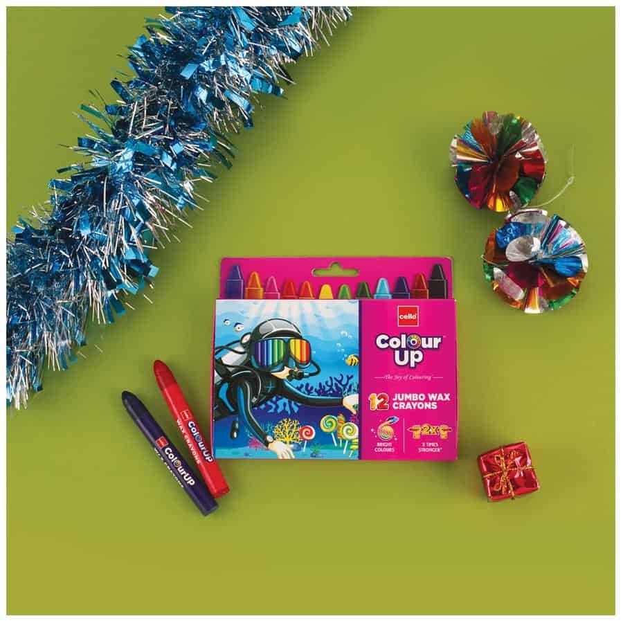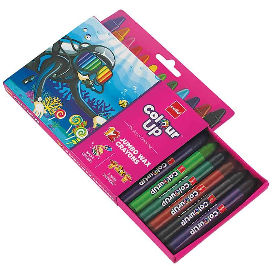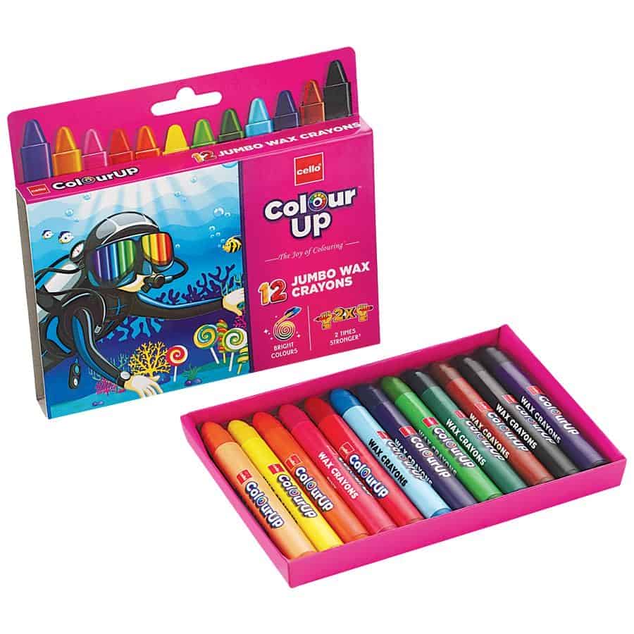 Includes 12 different bright colours which fuel your child’s imagination and creativity. Non-toxic play safe materials used, compliant with European toy standards (EN-71 certified. 2 times stronger body in jumbo size, to prevent breaking of crayons while using. Attractive adventure-themed pack, ideal for gifting to all kids.