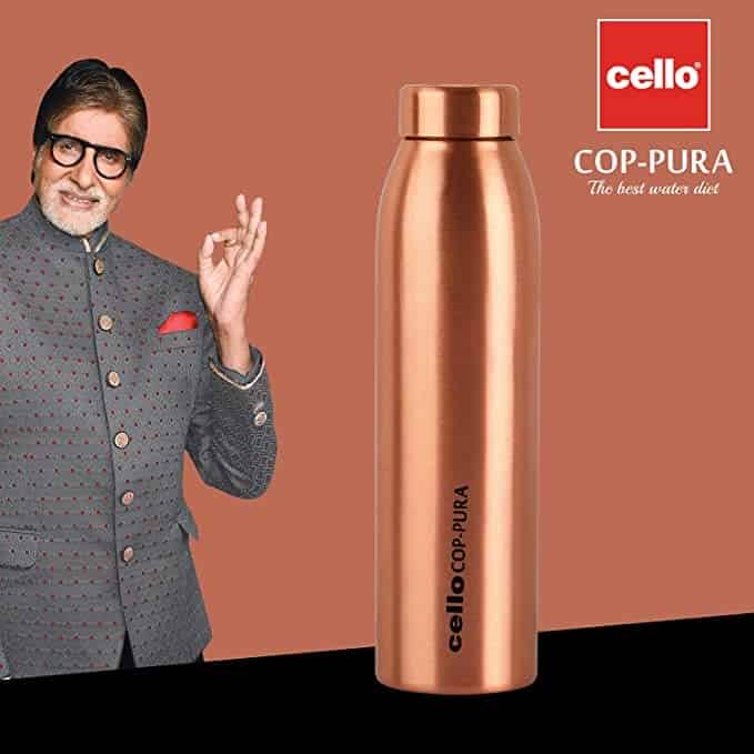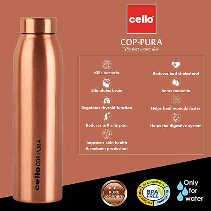 Cello Cop-Pura Jal Copper Water Bottle, 1000ml(Copper)