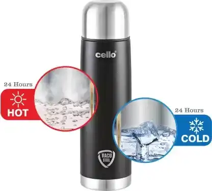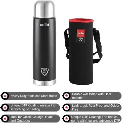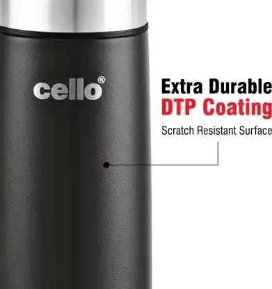 Cello presents the Duro Series of Tuff Steel insulated bottles that you can carry with you on treks, hiking, cycling, to the gym, school or office with ease. Designed with new and advanced DTP coating the colour of the bottles will not fade or scratch with use. Enjoy an active lifestyle while your bottle stays brand new, even with everyday wear and tear. The Duro Tuff Steel Flip bottle is manufactured in food safe double wall heavy duty stainless steel. The vaccusteel technology ensures that the bottles retain temperature of beverages upto 24 hours so you can enjoy your hot or cold drink longer. The 304 grade stainless steel does not oxidize or leach chemicals hence keeping the beverage healthy at all times. Compact and designed for the get go, this bottle comes with an additional thermal jacket with carry strap for enhanced portability.