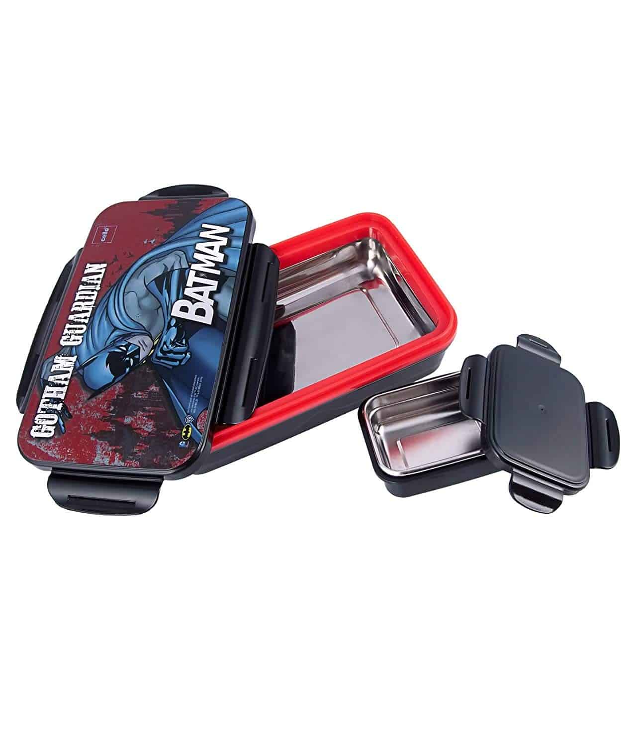 Name : Cello HI-Lunch Big Deluxe Insulated Lunch Box with Inner Steel and Stainless Steel Veg Box, Attractive Batman Print, Black