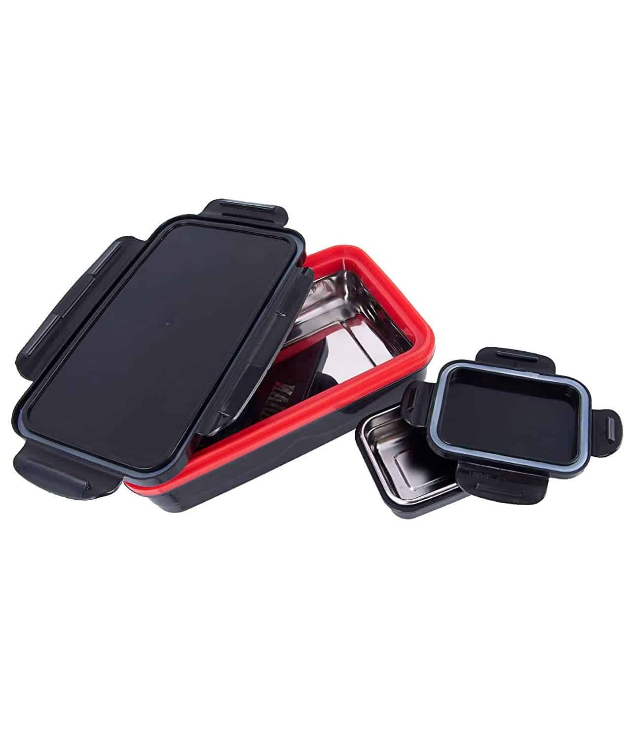 100 percent food grade. 100 percent leak proof. Insulated, keeps food fresh for longer hours. Easy to clean, stainless steel is much easier to clean and won't left strange odour like other material. We recommend you hand wash the product to preserve the appearance and sealing effect Easy to fit and store in briefcase, school bag or hand bag Easy to carry, easy to open and close Ideal for school going kids Comes with attractive designs & colours Color : Black, Material: Stainless Steel Package Contents: 1 Insulated Lunch Box
