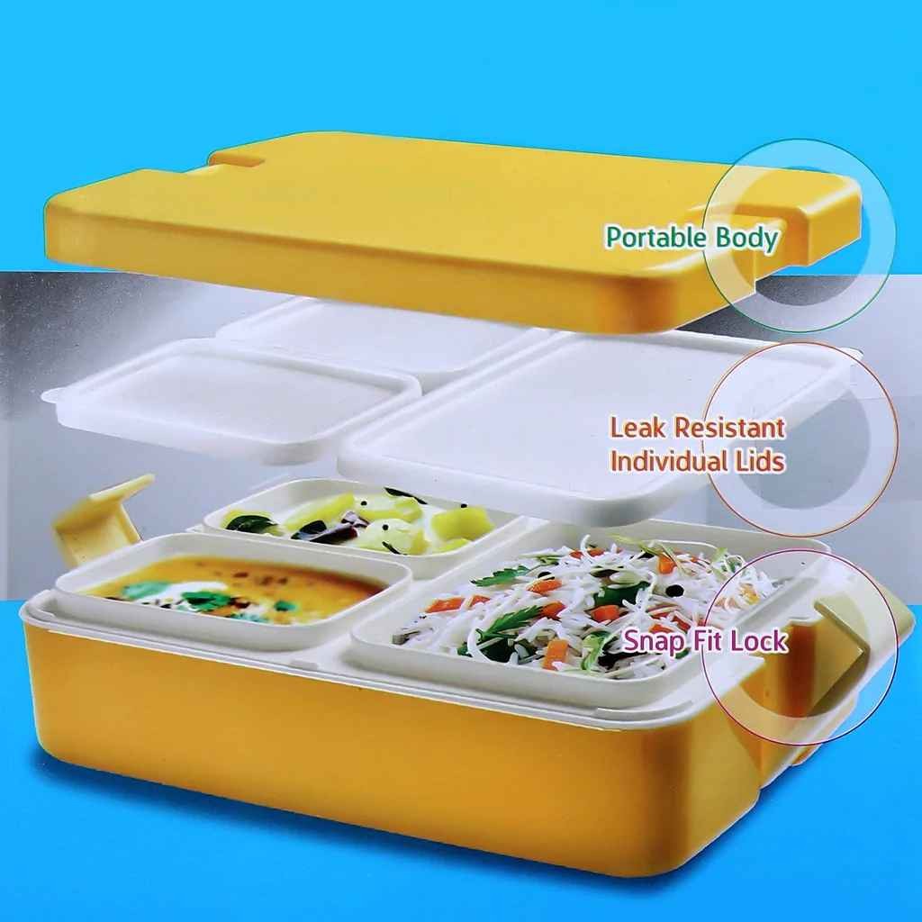 • 100% Air tight lockage: The lunch box is 100% air tight that keeps food fresh for long & protects the food from moisture.
