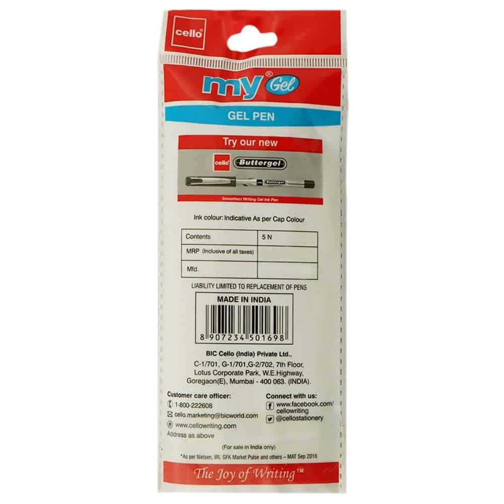 Cello Mygel pen has dark ink. It provides a smooth writing experience. 0.5 mm tip gives precise writing. It has waterproof ink.