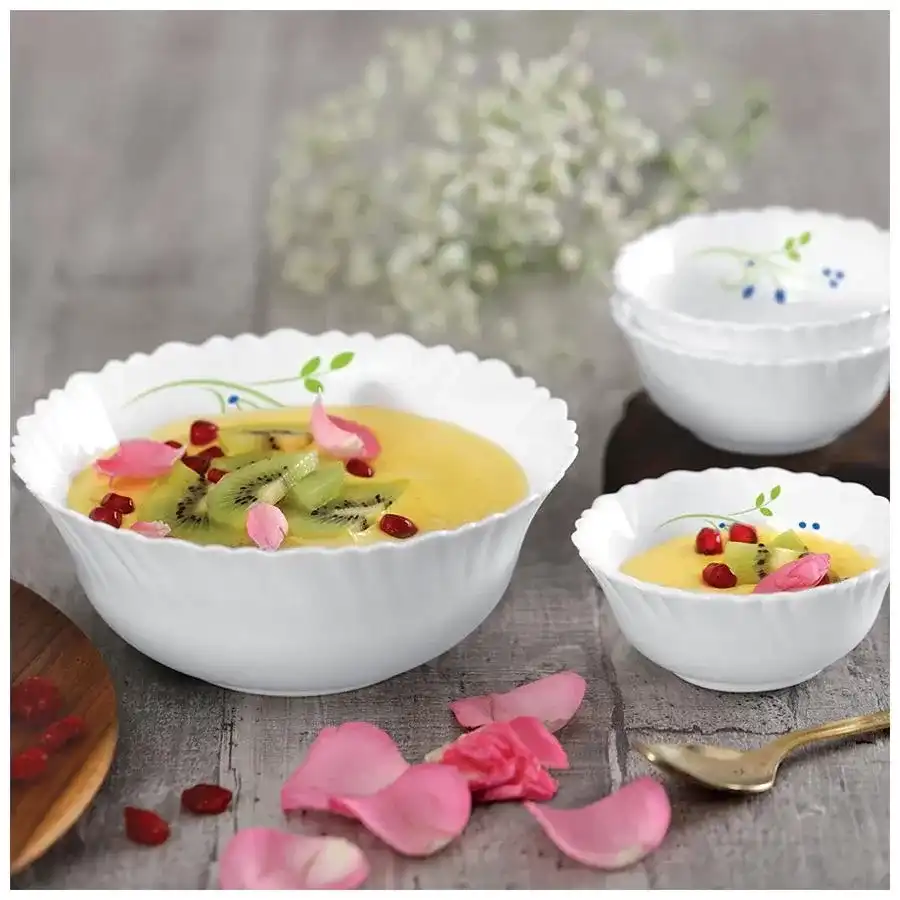 Cello Opalware has beguiling designs delicately poised between fantasy and fiction. Tableware that is infused with beauty and strength, charming dishes, gaily patterned in colourful new designs serve every purpose. This dessert set is a one-stop solution for a family of 6 to be used at home or when guests visit you. It can be used to enhance the celebration of the festivities during the festival time.