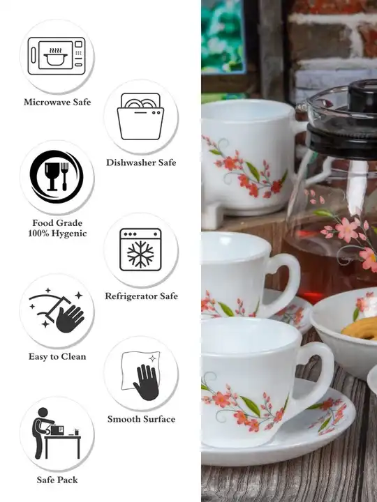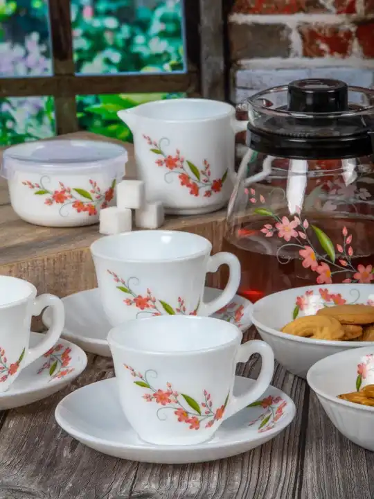 Welcome the day by enjoying your delicious cup of tea or coffee in this beautiful opalware tea set. This tea set freshens up your table with its beautifully designed pattern and is sure to add some life and colour to your home. This set is ideal as a gift or an addition to your own home. Consisting of durable opalware mugs and clear glass teapot, this set is going to last you through many cups of tea and coffee. Once you have finished using them, simply pop them in the dishwasher for quick and easy cleaning.