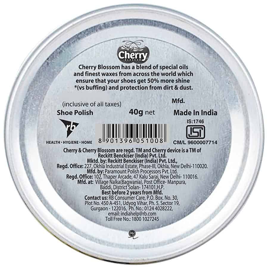 Cherry Blossom Shoe Polish - Black is traditional polish. It will give hygienic look to your shoes. It will make your shoe efficient and spotless shines and shields soft Black Leather and flammable. It produces a long lasting silky shine. It defends the shoes from water injure. It provides greater staining and scuffs coverage.
