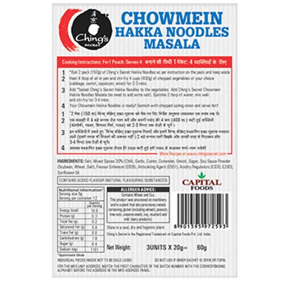 Easy-to-cook Masala Now make India’s favourite Desi Chinese dishes for your family at home! Cook up a different Desi Chinese dish every day with our Chinese Masala pouch. Now make Street Style Chowmein with ease at home, because ' Yeh Tadke wala Hakka Noodles hi Hai!;. Ching’s Desi Chinese Masalas are so perfectly blended that you don’t even need to add any salt, spice or sauce additionally. Cook up your favourite Chowmein with total ease in a few simple steps. Ab jab bhi kare dil, Ching’s Desi Chinese nahin mushkil!