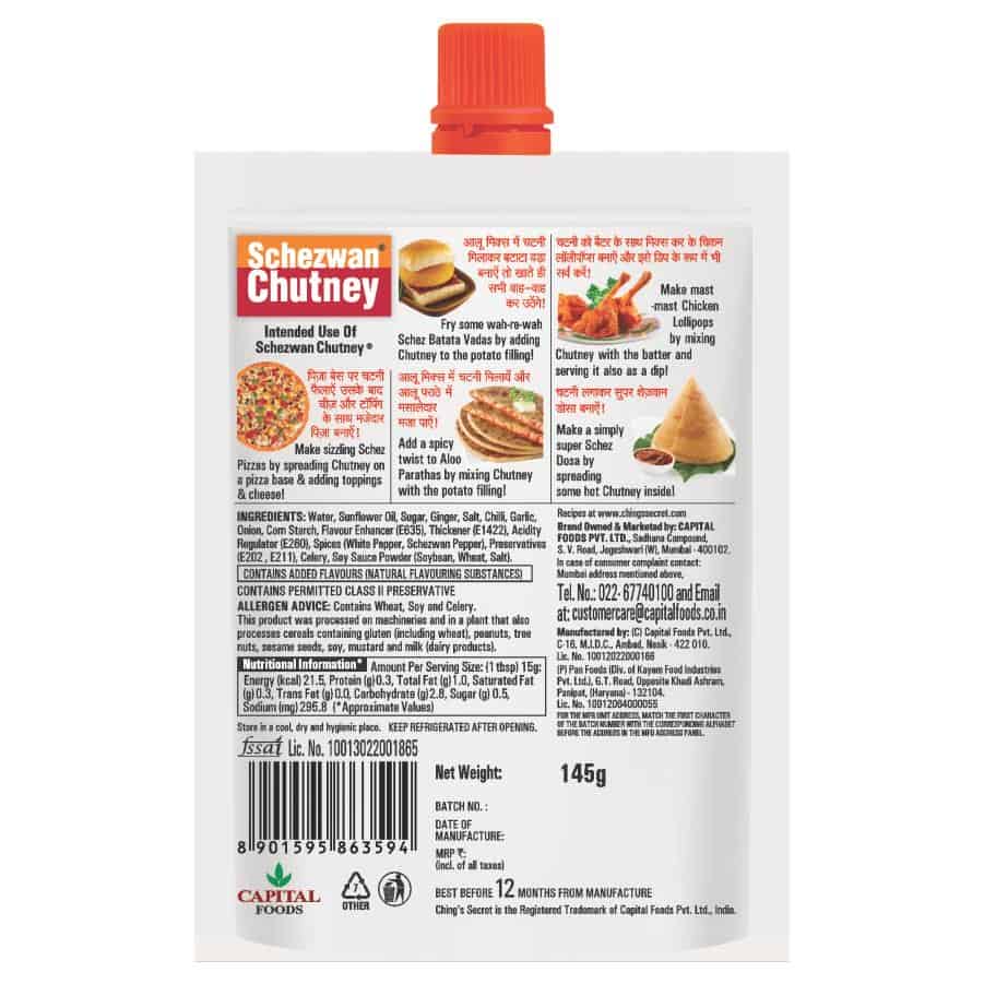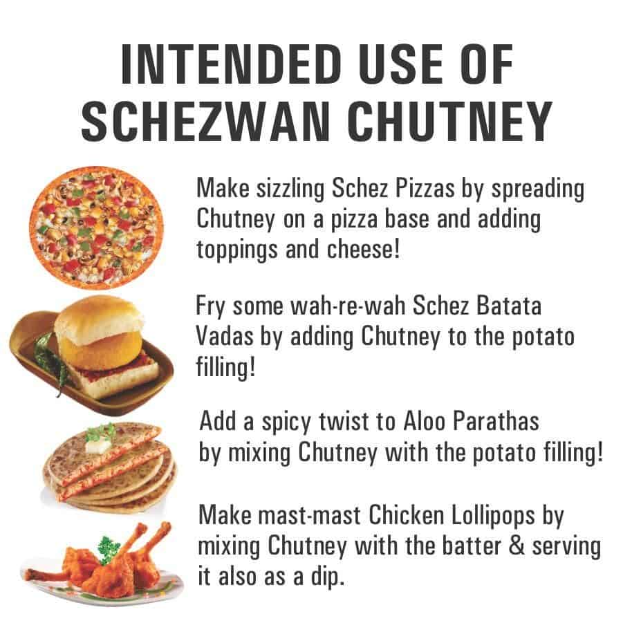 Chutney Nahin, Rocket Hai, Rocket! Ching's Schezwan Chutney is the most versatile chutney ever! You can use it as a dip or a spread and even cook with it. On its own, it becomes a spicy dip for snacks like fries, pakoras and bhajiya or starters like spring rolls. Spread it on anything - from dosa and vada pav to paratha and pizza - to add some extra zing. Cook Schezwan dishes like fried rice, chowmein, tikkas or biriyani with a few scoops of this fiery Schezwani tadka