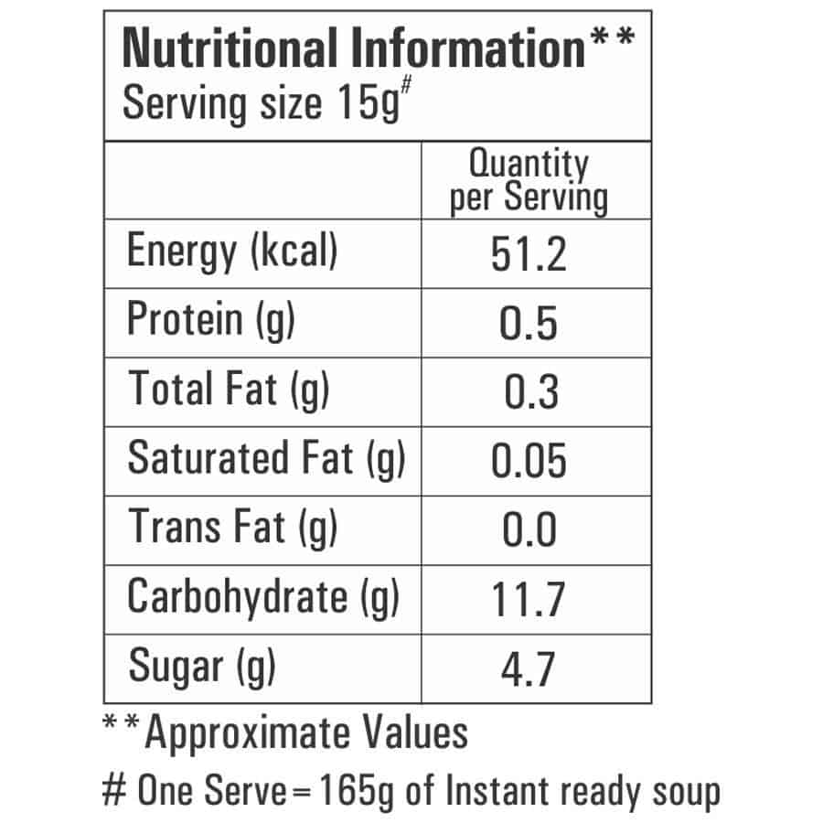 Ek Minute Mein Hunger Ki Bajao! The quickest and most delicious way to bust those hunger pangs is with Chings Instant Soups - Indias No. 1 Desi Chinese Soups. With just one cup of hot water and in just one minute you can relish a delicious garam-a-garam cup of Chings Instant Soup, anytime, anywhere. You can choose between the creamy and wholesome Sweet Corn, the hearty Mix Veg with crunchy veggie bits, the classic rich Tomato, the spicy Hot Sour and the zesty Manchow with veggies. So delicious and so satisfying!