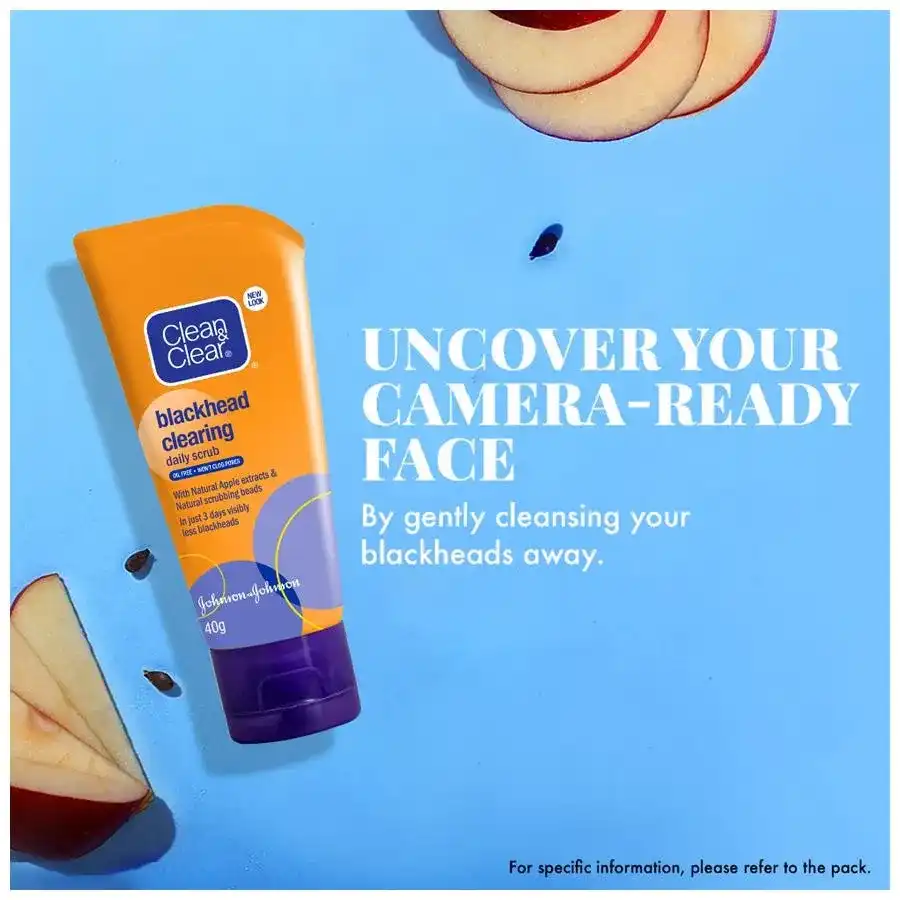 Clean & Clear Blackhead Clearing Daily Scrub is a fast and effective solution for skin that is prone to blackheads. It has effective micro-scrubbing beads that break down trapped oil, dirt, and dead skin. The natural apple extract formula penetrates deep into pores to help soften stubborn blackheads and prevents new ones from forming. Its gentle exfoliating action leaves your skin smooth and clean.