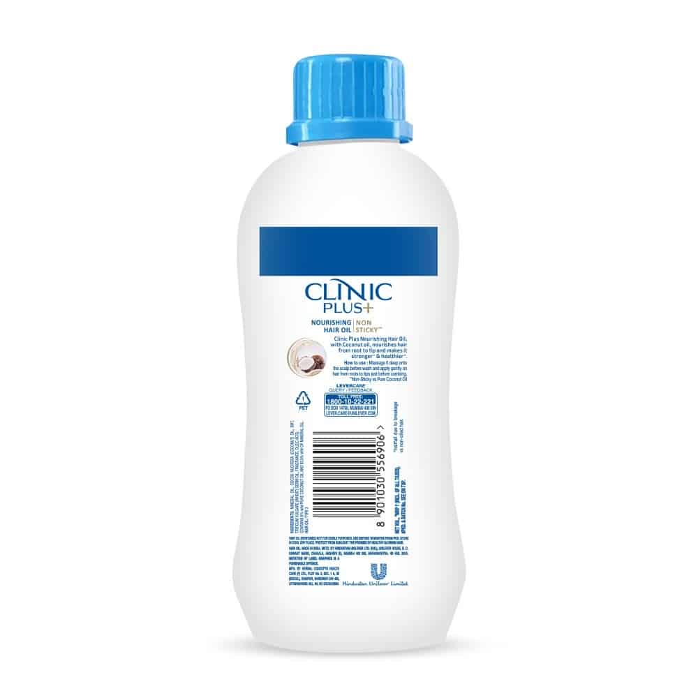 The Clinic Plus Nourishing Hair Oil strengthens and nourishes your hair each time you massage it on your scalp. With a gentle, daily care formula, it contains a blend of mineral and coconut oils for that special shine and additional care. You can also apply this to your hair after washing it to let it soak in for a few days. Apply this oil from root to tip so that it works its magic both on your hair and scalp. And you dont need to worry about stepping out with it, because its not that greasy! Go ahead, gift yourself some deep nourishment.Features & Benefits- Clinic plus nourishing hair oil contains coconut oil It nourishes your hair from root to tipCan be used by the whole familyMakes your hair stronger, healthier and full of life.Suitable for all hair typesApply this 12-24 hours before you wash your hair and you are ready with lustrous hair