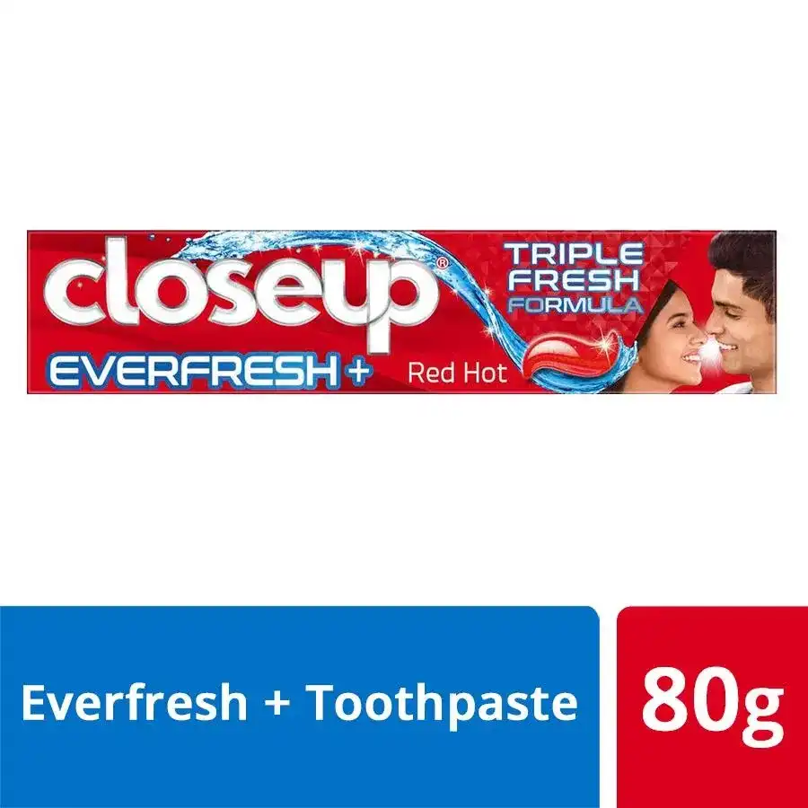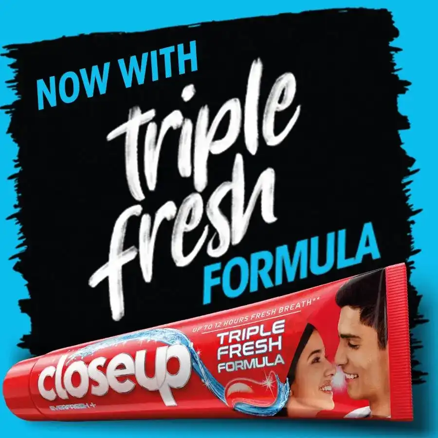 • Closeup Red Hot Everfresh+ Gel Toothpaste now in Triple Fresh Formula harnesses the combined power of 3 components keeping you protected and fresh