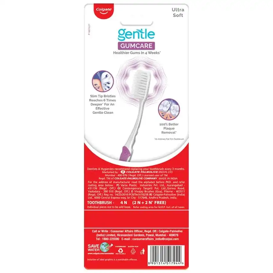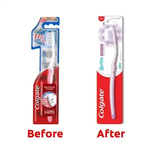 Colgate Slim Soft Toothbrush, with 17x slimmer tip bristles vs ordinary end rounded bristles, provides deep yet gentle mouth clean. The slimmer bristle tips help clean in-between teeth and along the gumline. It sweeps away food and plague, giving you a cleaner mouthfeel with every brush. The toothbrush also comes with a slim rubber grip handle to offer comfortable brushing. Try Colgate SlimSoft toothbrush and experience deep cleaning along the gum line and narrow gaps between teeth, so you wear a confident smile every day!
