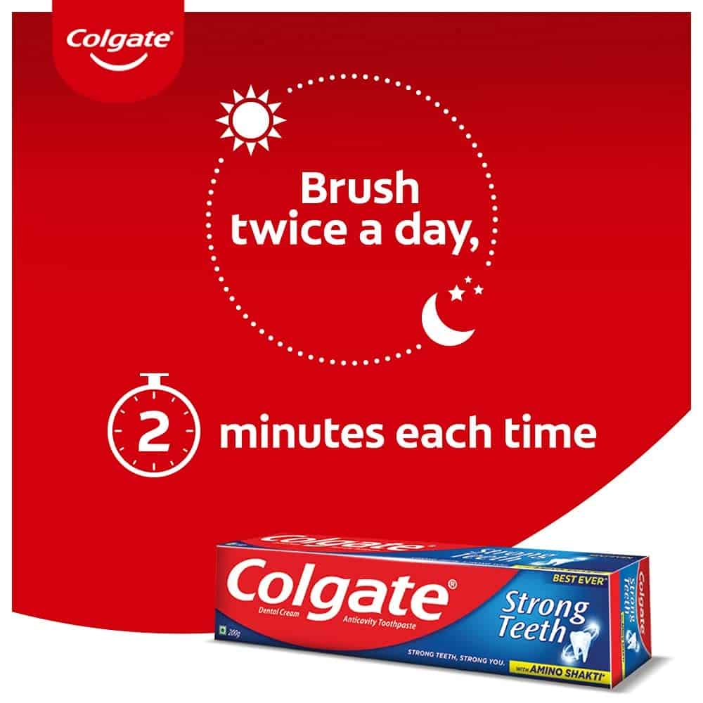 Colgate Strong Teeth with its unique Amino Shakti formula adds natural calcium to strengthen teeth from within and makes them resistant to tooth decay.