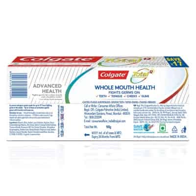 Only 20% of the germs in your mouth are on your teeth, the rest 80% are on gums, tongue and cheeks. Colgate Total Advanced Health is an antibacterial toothpaste that fights germs on teeth, tongue, cheeks, and gums giving you Whole Mouth Health for 12 hours