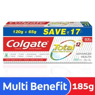 Colgate Total provides more benefits than before - helping prevent cavities, plaque build-up, tartar formation, gingivitis and sensitivity. It gives you fresh beathe , protects your enamel, and removes stains, giving you a healthier, whiter smile.