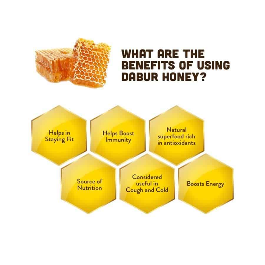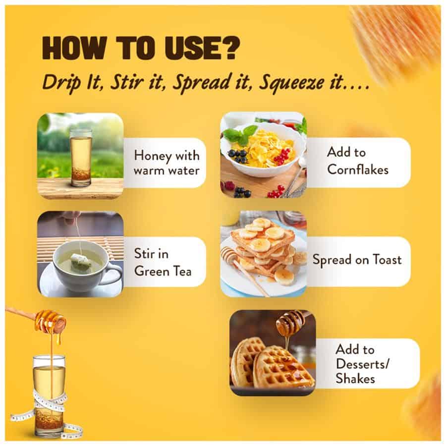 Do you want to boost your Immunity? Do you find it difficult to manage a healthy weight? Do you want to give a healthy start to your day? Do you wish to improve your digestion and metabolism? If the answer to the above questions asked is YES, then you can include World’s No 1 Honey brand - Dabur Honey as a part of your daily regime. Dabur Honey is 100% pure and entirely sourced from Indian beekeepers. Every batch of Dabur Honey conforms strictly with all the 22 parameters mandated by FSSAI (Food Safety and Standards Authority of India) for testing Honey. Dabur Honey undergoes 100+ tests and is LCMS/MS tested for antibiotics, IRMS tested for no sugar adulteration and LCMS/MS-SMR tested for zero sugar syrup adulteration. Dabur Honey is completely sourced, tested and packed by us ensuring that it is untouched by human hand. According to a recent clinical study, people who consumed Dabur honey with lukewarm water every morning, showed significant improvement in stamina, digestion and waist-hip size.* For a healthy start to your day, you can have Dabur Honey with lukewarm water daily to see results. Check purity certificate and report of your pack of Dabur Honey by sending your batch code as Whatsapp to 4071781666 or log on to daburhoney.com