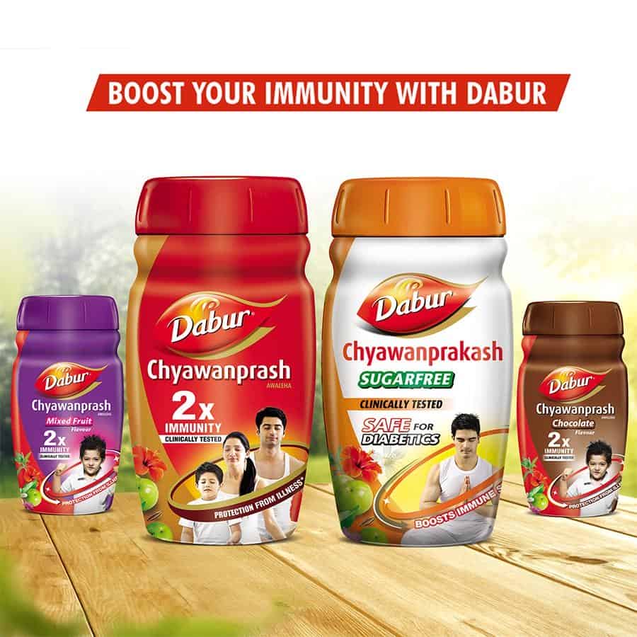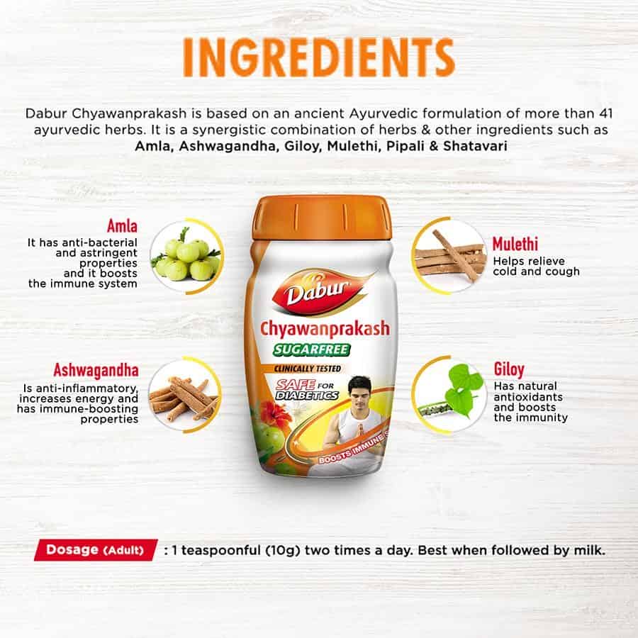 Diabetes can weaken your immune system which increases the chances of catching infections. Dabur Chyawanprakash has been specially curated to meet the immunity needs of diabetics and people looking for sugar-free solutions to boost their immunity. A result of constant innovation by Dabur Research and Development Center, Dabur Chyawanprakash has been clinically tested and found to be safe for Diabetics. Dabur Chyawanprakash has been made from more than 40 Ayurvedic Herbs like Amla, Ashwagandha, Giloy etc. to give you the goodness of Dabur Chyawanprash with no added sugar. Regular consumption of Dabur Chyawanprakash helps strengthen the immune system and helps keep you fit by protecting you from day to day ailments like cough & cold.