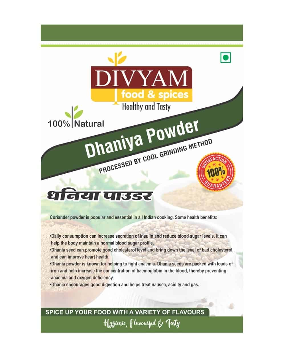 Dhaniya (Coriander) powder is popular and essential in all Indian cooking. Some health benefits; Daily consumption can increase secretion of insulin and reduce blood sugar levels. It can help the body maintain a normal blood sugar profile.