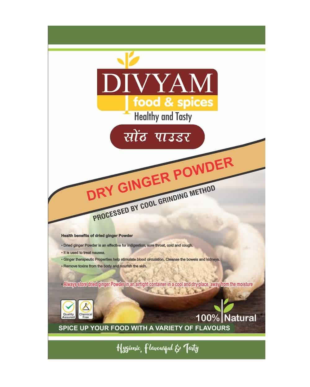 Divyam Dry Ginger Powder Is Fine-Ground, Light Yellow, Cochin Ginger- Renowned For Its Subtle Lemon Like Aroma And Sharp, Biting Flavour.