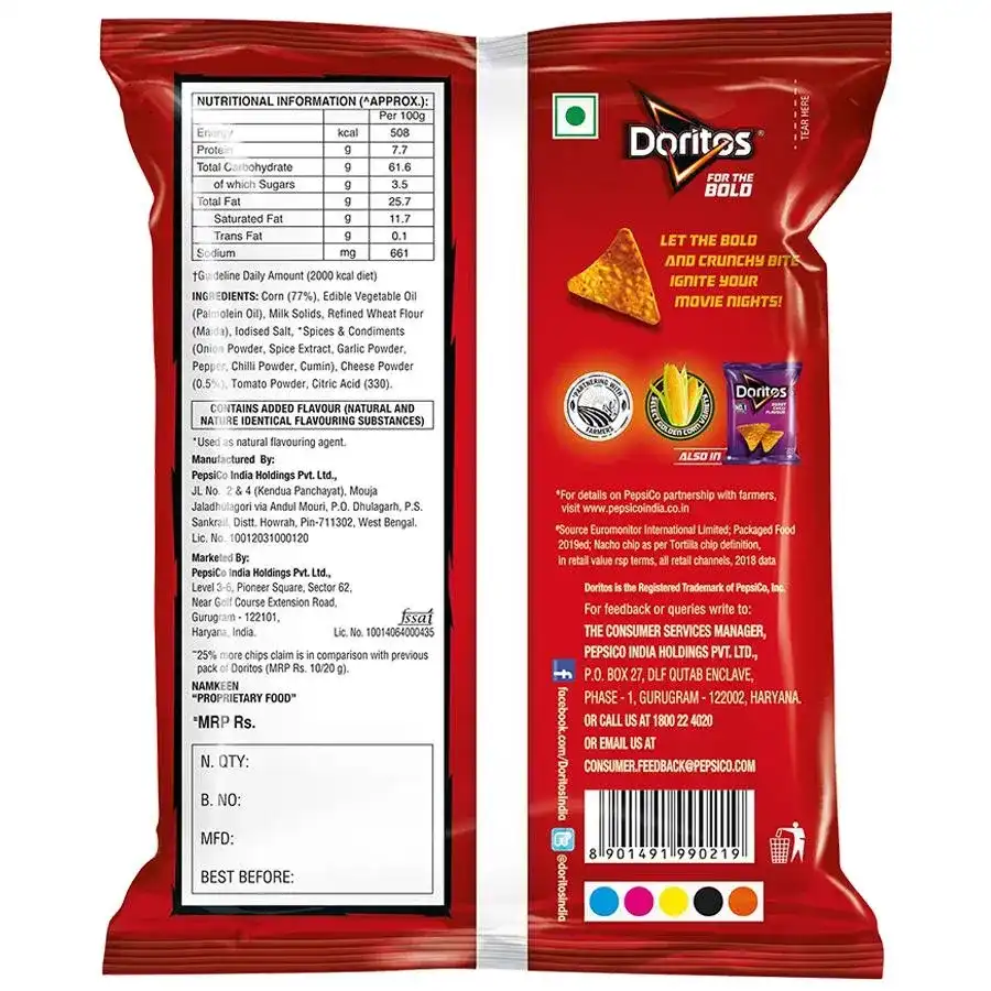 Doritos is the spark that ignites you to be bold. Tooth rattling crunch and intense flavours ignite you to seize the moment and release your inner boldness. If you’re up to the challenge, grab a bag of DORITOS Nacho Cheese tortilla chips and get ready for the experience. It’s has a bold experience in snacking and beyond.