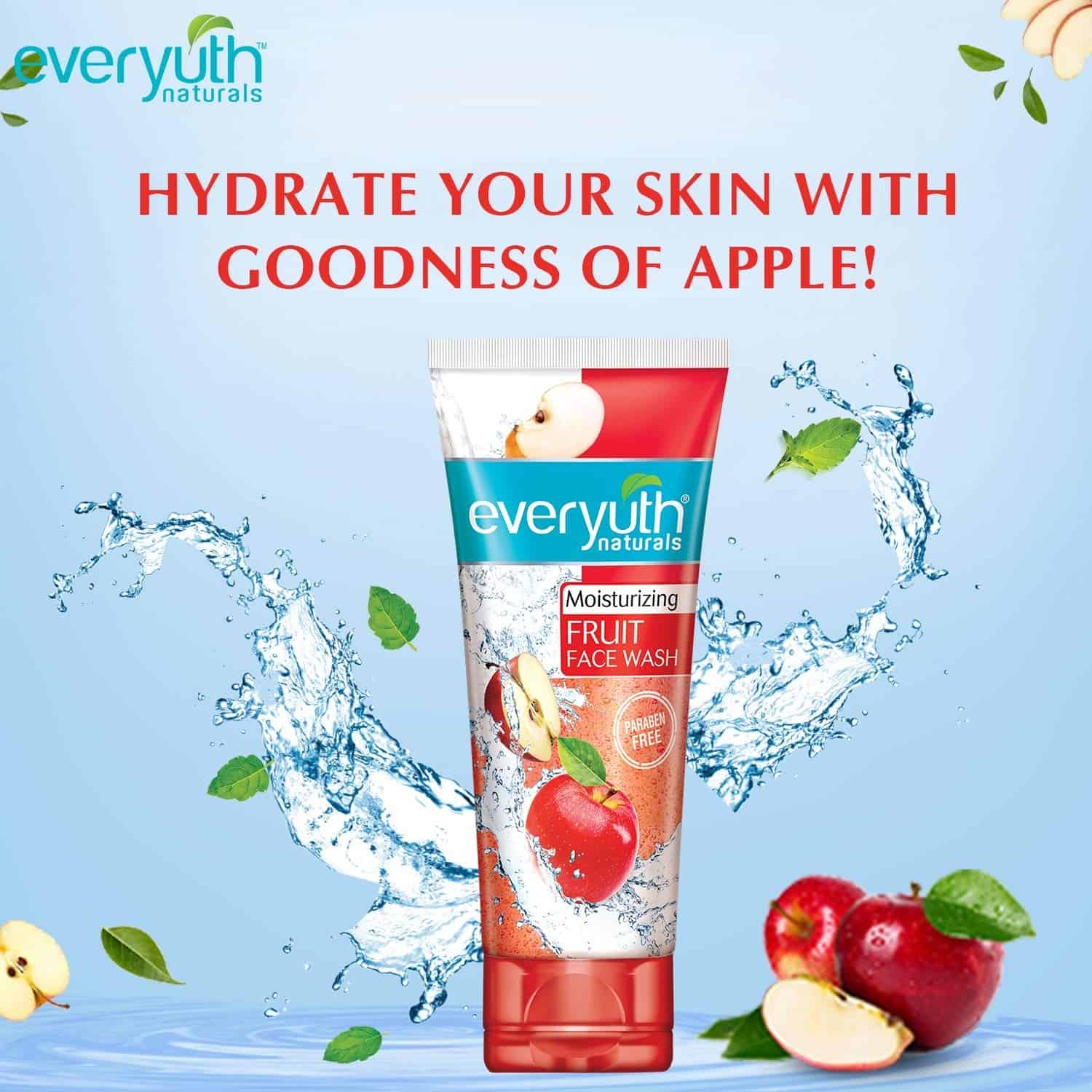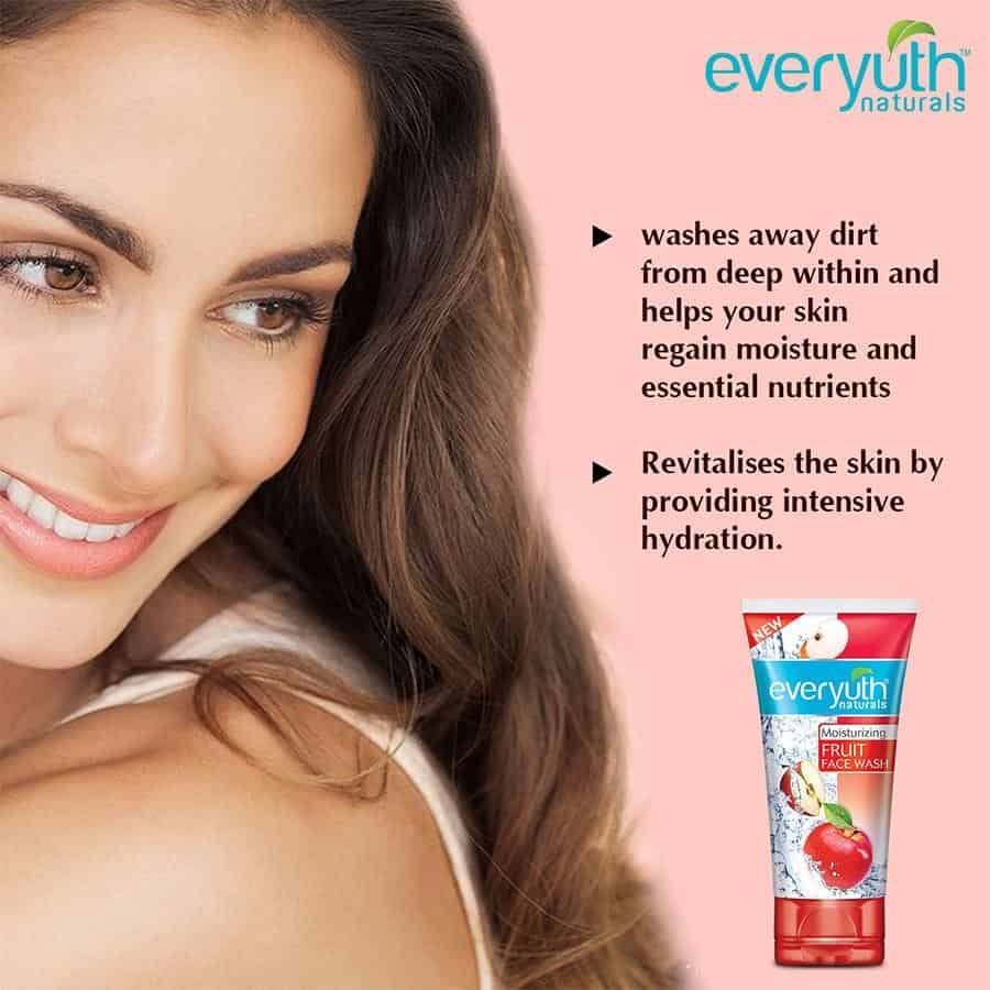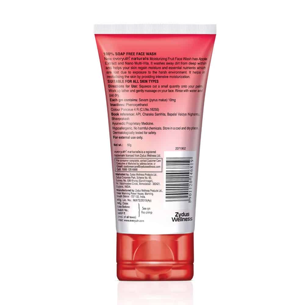 Zydus Wellness Ltd. Offers a range of skin care products under the brand nme of Everyuth nturals. While having the advantage of being a skincare brand from a healthcare company Everyuth nturals has always come up with products that address the different needs and skin types of young women. The products harness the goodness of ntural ingredients that are known for their efficacy and skin nurturing properties. As a result, the brand promises nture's safety and tender care along with the benefits of proven scientific research. Everyuth enjoys market leadership in skincare segments like face masks and scrubs and has a strong position in the face wash segment as well. New Everyuth Naturals Moisturizing Fruit Face Wash has Apple Extract and Nano Multi-Vita. It washes away dirt from deep within and helps your skin regain moisture and essential nutrients which are lost due to exposure to the harsh environment. It helps in revitalising the skin by providing intensive moisturization.