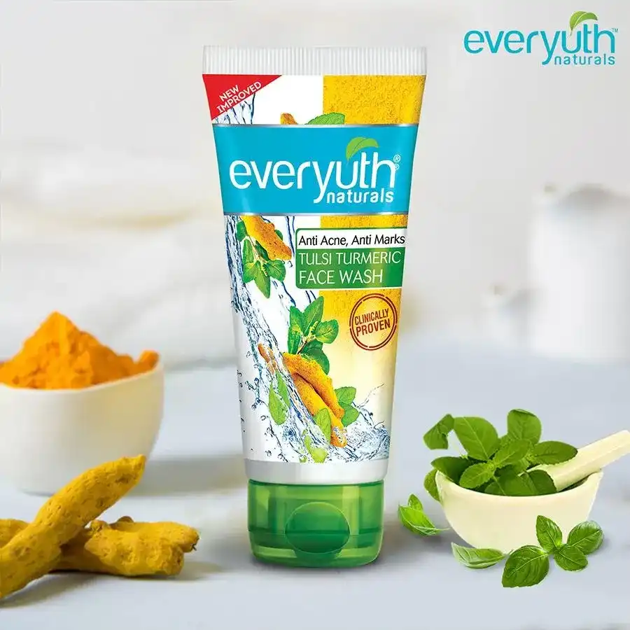 • Everyuth Naturals Tulsi Turmeric Face Wash helps reduce marks, blemishes and dark spots.