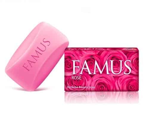 Famus Perfume Beauty Soap - Rose is a Grade 1 soap having 76% TFM. Enriched with the goodness of Glycerin which gives moisturizer advantage over other soaps and helps the skin glow and retain its softness. Apart from this, the fragrance of the soap lasts longer and keeps the user fresh & energetic all day long.