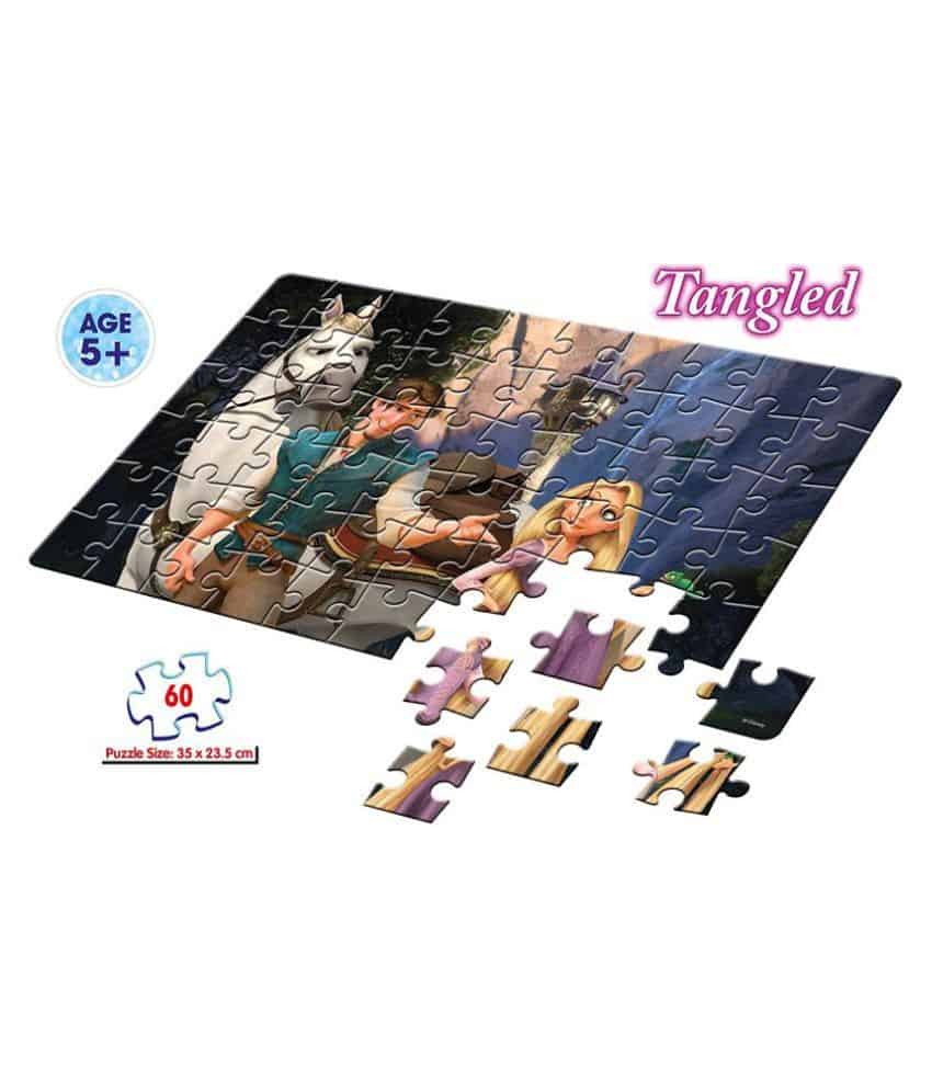 Puzzle consisting of the universally known characters from the Disney movie “Tangled”. It is a 2010 American 3D computer-animated musical adventure film produced by Walt Disney Animation Studios and released by Walt Disney Pictures. Loosely based on the German fairy tale "Rapunzel" in the collection of folk tales published by the Brothers Grimm, it is the 50th Disney animated feature film.Fun learning as well as an educational tool comprising 60 pieces that will keep your daughter busy as she will be enjoying as well as learning from this jigsaw puzzle for her overall development. Recommended for girls of 5 years of age and above to improve her visual skills, mnemonic skills, mastering the art of being patient enough and boosting her memory. The 3 famous animated characters are present in this puzzle. The vivid colors and the different characters unique in terms of their physical appearance wearing different outfits will definitely pique your daughter’s attention. This creatively designed puzzle comes in a dimension of 35 x 23.5 cm. The fictional movie characters present on this high-quality cardboard are the universally famous “Rapunzel”, “Flynn Rider” and “Maximus”. All these years your daughter may have watched this series on Television, read colorful story books about the same, or you yourself may have narrated the story to her. But now she will get hands-on experience by applying her logic and building this power-packed Jigsaw Puzzle. The lead character is “Rapunzel”, an innocent, young girl, who is locked up by her overly protective mother. She is a princess, known for her long, magical, golden hair. Her wish to escape into the world outside finally comes true when she meets the good-hearted thief, Flynn. “Flynn Rider” is a swashbuckler known for his charm and quick wit and made a name for himself as a notorious thief. “Maximus” is a palace horse for the Royal Guard and the former arch-rival of Flynn Rider.Get this amazing movie transformed into a jigsaw puzzle and watch your daughter mastering the art of being patient, developing time management skills and building up her self-confidence as she assembles all the pieces together correctly. Hours of fun, learning, and enjoyment.