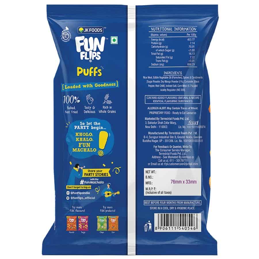 Relish the delectable combination and perfectly blended with herb and flavour. About the brand-Fun Flip has steadily established itself as an indispensable part of India's snacking culture since its launch in 1984. With its irresistible taste of Indian flavours, Fun Flip has established itself as a brand and continues to grow in the hearts and minds of its consumers. Fun Flip is made with Indias best-quality fresh potatoes, simply sliced and cooked in edible vegetable oils, and then seasoned with delicious flavours!