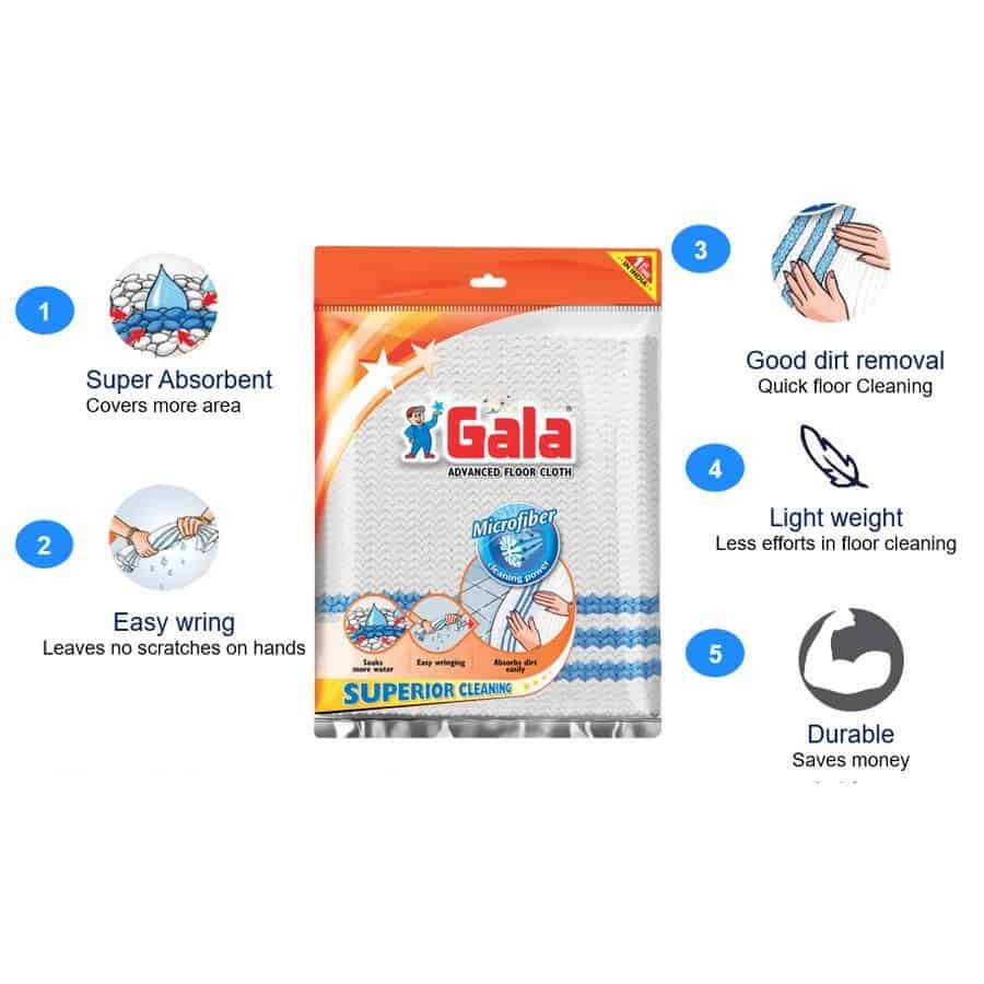 Gala, one of the largest manufacturers of home cleaning tools in India, brings out advance floor cloth made from microfibre material to give superior cleaning confidence, requires fewer efforts in cleaning, is 4 times longer lasting than basic floor cloth and does not harm your hands while squeezing due to the softness of the material.