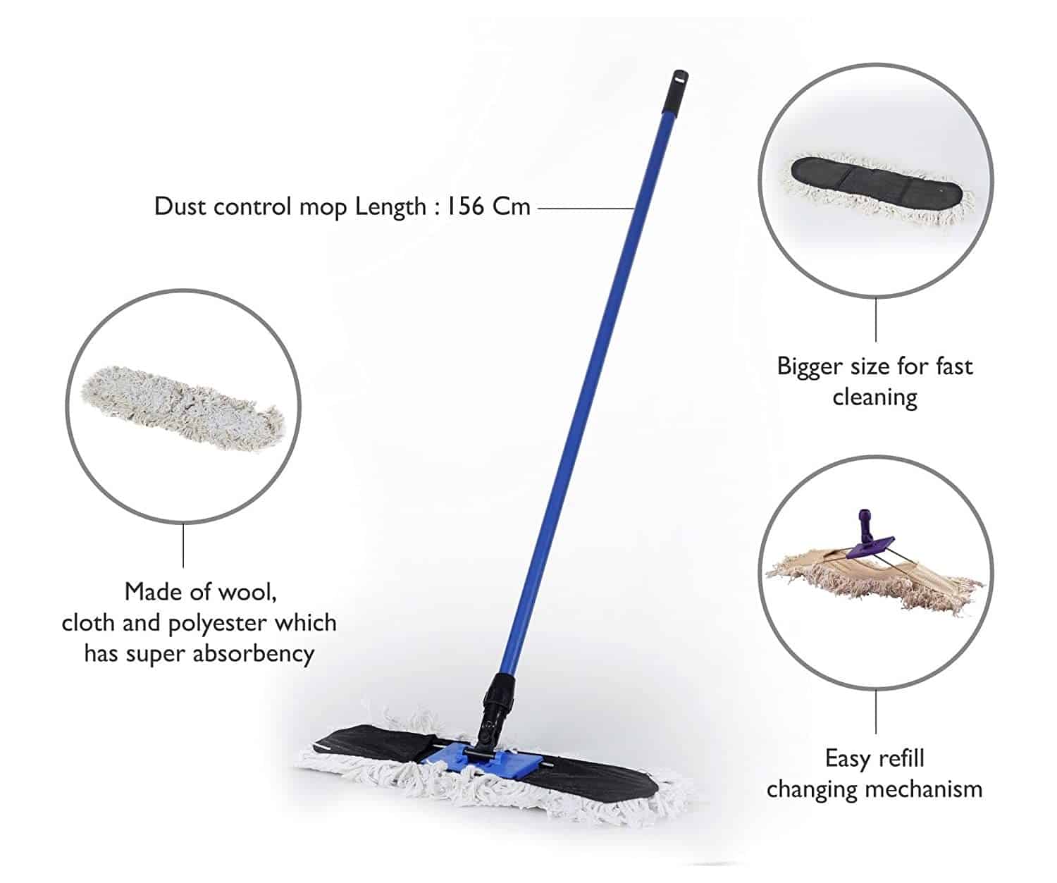 Gala India's one of the largest manufacturer of home cleaning tools brings out dry and wet floor cleaning mop with a refill of wool, cloth and polyester, which has super dust absorbency capacity. Bigger size refill for fast cleaning can reach corners easily, easy refill changing mechanism. Special powder coated 4.5 ft metal pipe. It has a flexible moving head with Telescoping Handle which is easily extendable from 32 to 55 inches. It also does 360 degree cleaning
