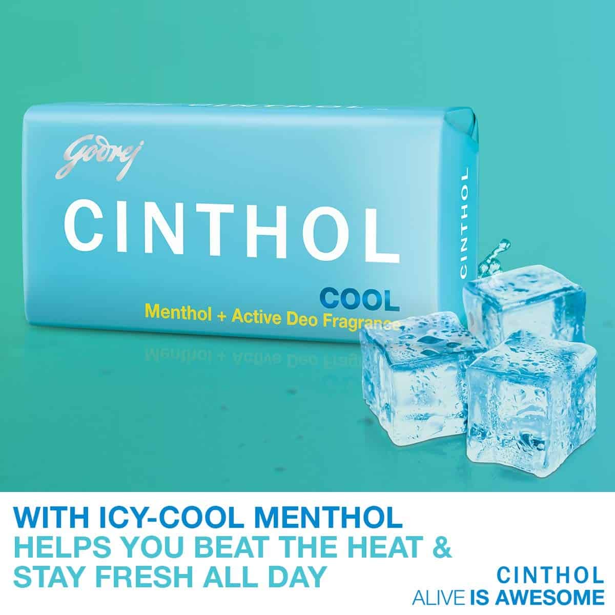 Godrej Cinthol Cool Menthol + Active Deo Fragrance Soap, 3x100g (Pack of 3)