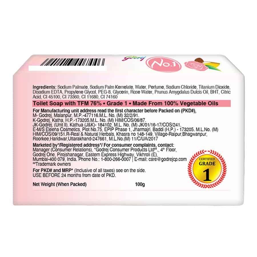 Favoured by over 380 million consumers, Godrej No.1 offers you 'nature's way to beauty' with carefully chosen natural ingredients to make your skin naturally beautiful. It is Grade 1 quality soap and the highest-selling soap of its kind in the country. Feel the brush of soft rose petals as you apply the Godrej No.1 Rosewater and Almond soap to your skin. It has the fragrance of roses and the nourishment of almonds, which renders your skin smooth and fragrant. It preserves the young nature of your skin giving you a perfect complexion. It protects your skin and gives you a youthful and young look.